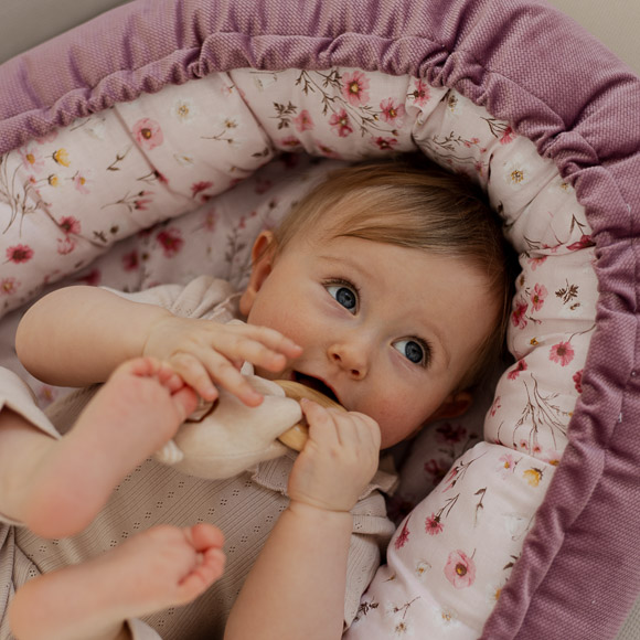 Otulające boki kokonu ograniczają przestrzeń, dzięki czemu dziecko czuje się bezpiecznie i spokojnie – podobnie jak w brzuszku mamy. Wysokie, miękkie brzegi chronią przed przypadkowym sturlaniem się, a antyalergiczne wypełnienie dba o wygodę i zdrowy wypoczynek. Kokon świetnie sprawdzi się w łóżeczku, łóżku rodziców, na kanapie, a także podczas podróży czy wizyt u rodziny.