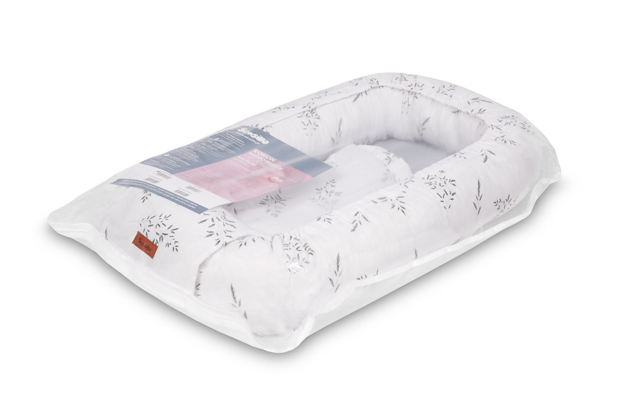 Kokon idealnie otula niemowlę i ogranicza mu przestrzeń, dzięki czemu dziecko czuje się bezpiecznie jak w brzuchu mamy. Wysokie ścianki zapobiegają sturlaniu się dziecka.