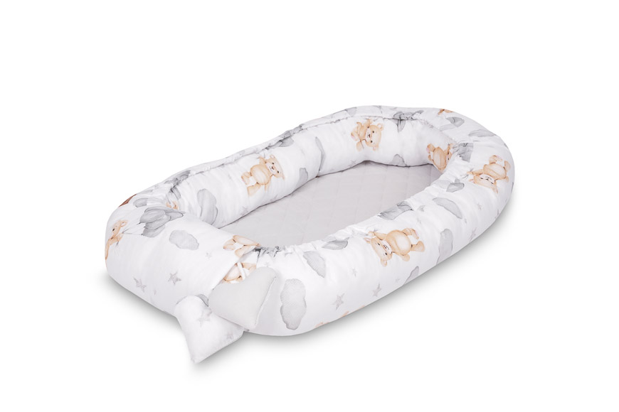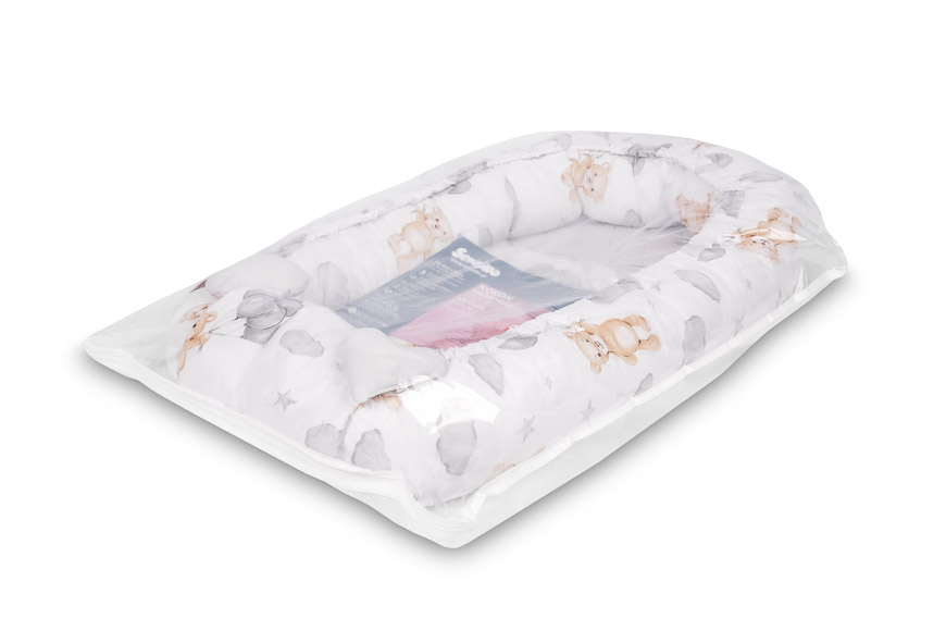 Kokon idealnie otula niemowlę i ogranicza mu przestrzeń, dzięki czemu dziecko czuje się bezpiecznie jak w brzuchu mamy. Wysokie ścianki zapobiegają sturlaniu się dziecka.