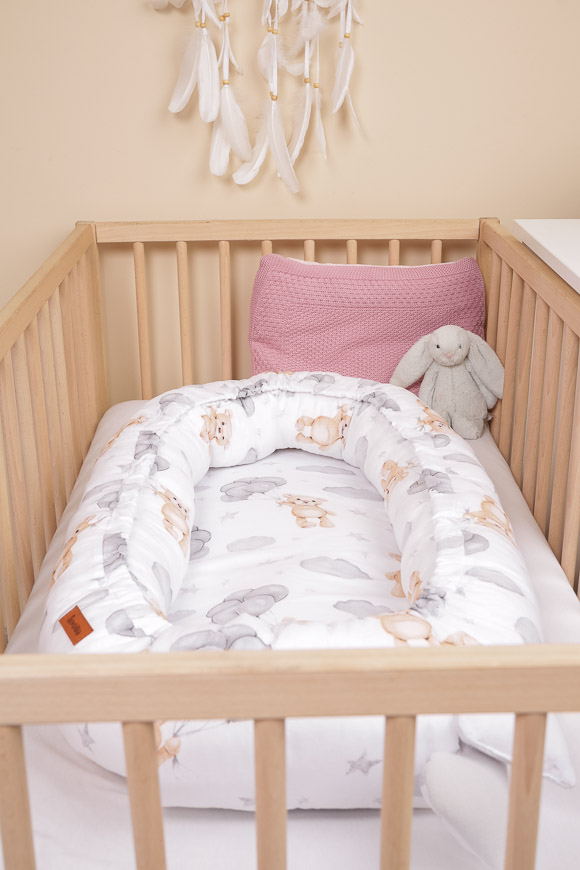 Gniazdo kokon muślin Miś z balonami z poduszką