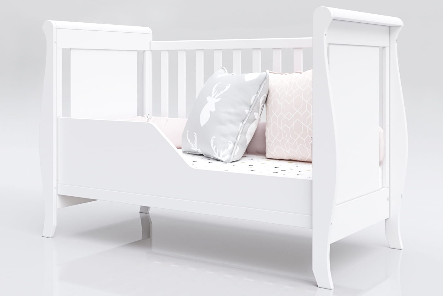 Chcesz korzystać z łóżeczka dłużej? Mamy na to rozwiązanie. Wystarczy dokupić barierkę zabezpieczającą, a łóżeczko bez problemu zmienimy w praktyczny tapczanik. Takie łóżeczko sofka może być użytkowane dłużej (barierka nie ujęta w cenie podstawowej).