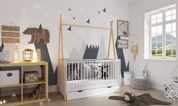 Łóżeczko w formie Tipi, idealne dla małego zimowego Trapera lub Indianina. Łóżeczko w wymiarze 140x70 posłuży do 5 roku życia dziecka. W cenie zawarto barierkę która pozwoli nam łatwo przerobić łóżeczko na praktyczny tapczanik