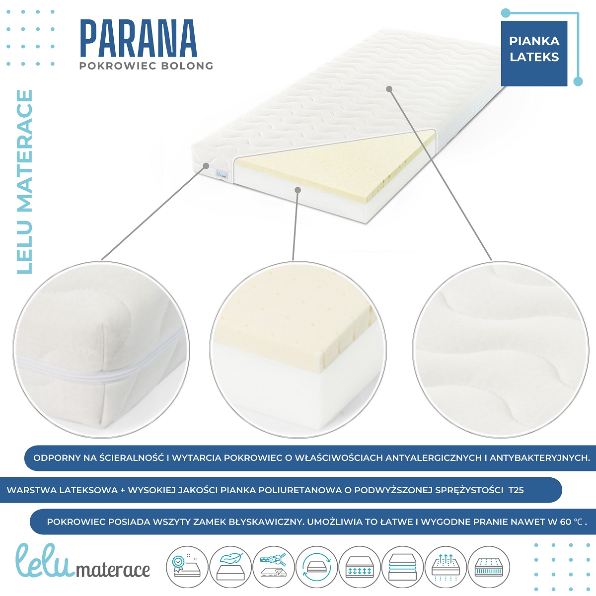 - Materac został wzbogacony o warstwę naturalnego lateksu, który pochodzi z drzew kauczukowych.