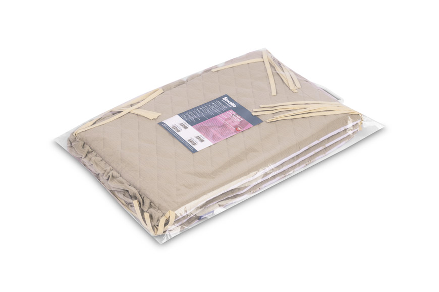 Ochraniacz wykonany jest z wysokiej jakości bawełny z nadrukiem oraz niezwykle miękkiego i przyjemnego w dotyku muślinu, dzięki czemu jest delikatny dla wrażliwej skóry dziecka. Wypełnienie z włókna poliestrowego amortyzuje uderzenia i chroni malucha przed kontaktem z twardymi szczebelkami łóżeczka podczas poruszania się.