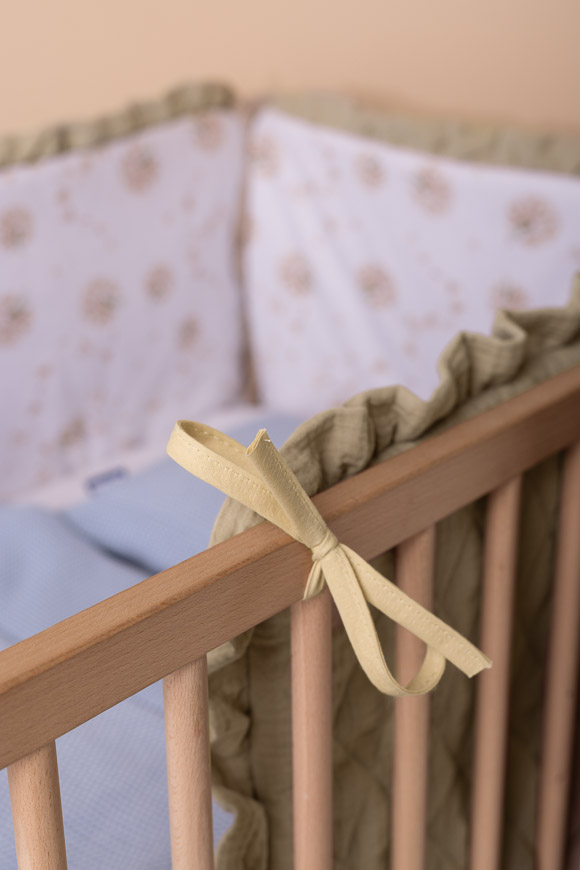 Stabilne przymocowanie ochraniacza zapewniają praktyczne tasiemki, które umożliwiają łatwe przywiązanie go do szczebelków łóżeczka. Dzięki temu ochraniacz pozostaje na swoim miejscu i skutecznie spełnia swoją funkcję ochronną.