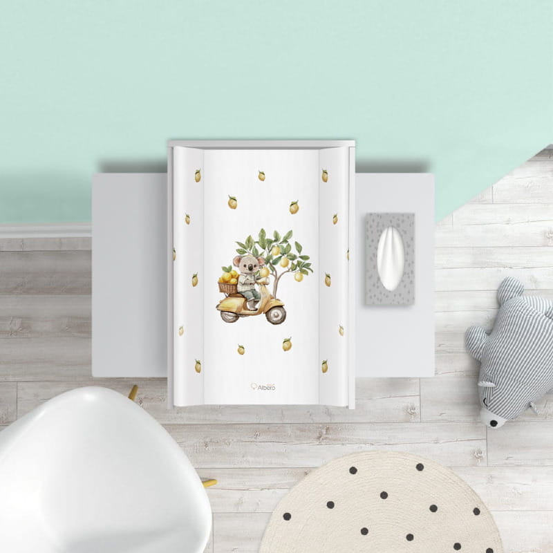 - Jego boki są specjalnie wyprofilowane, aby zabezpieczyć maluszka przed zsunięciem się z przewijaka.