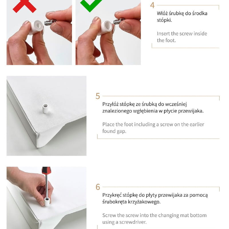 - Przewijak twardy o długości 70 cm i szerokości 47 cm (+/- 0,5 cm).