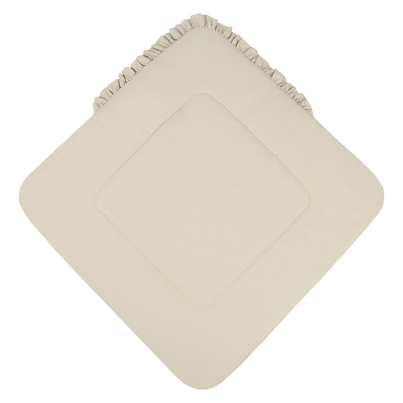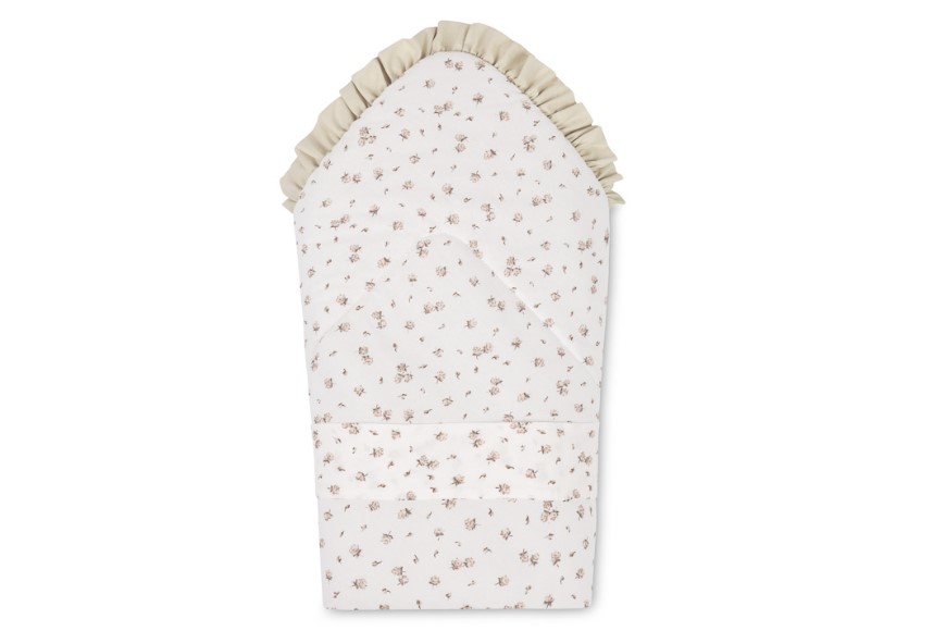 Dwustronna konstrukcja pozwala na zmianę wyglądu – jedna strona z subtelnym nadrukiem, druga z miękkiej bawełny. Rożek sprawdzi się jako otulacz do snu, mata do zabawy oraz wygodne wsparcie podczas karmienia i noszenia.