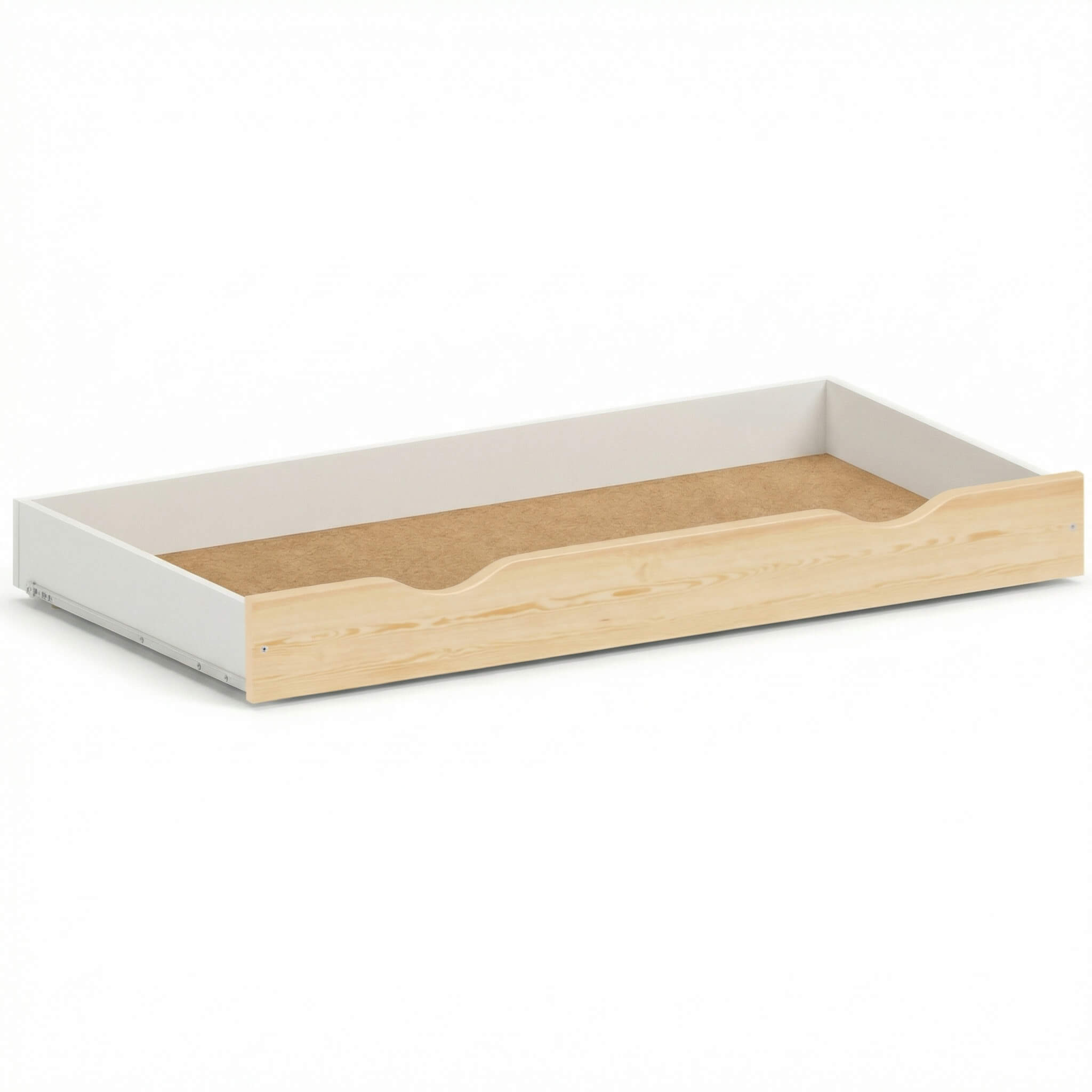 - Szuflada na prowadnicach do łóżeczka dziecięcego 120x60 cm.