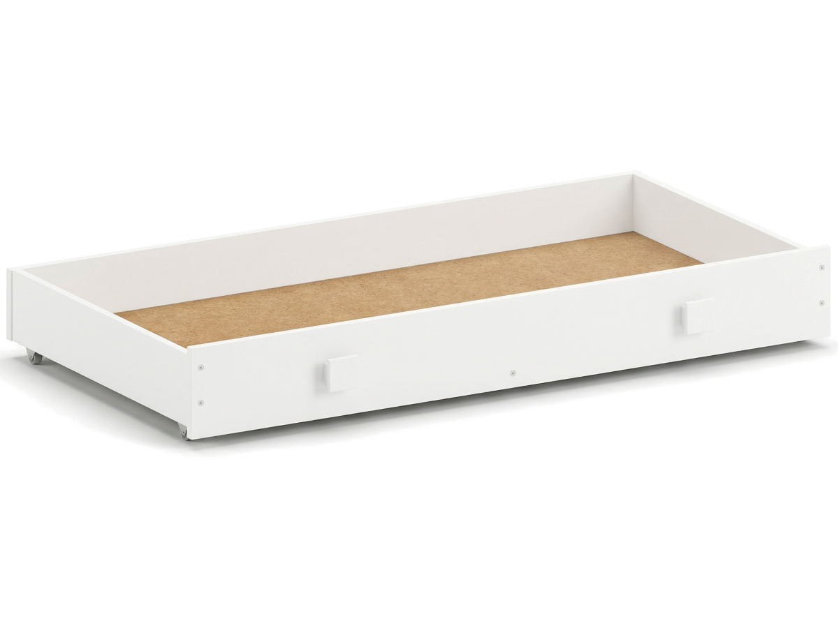 Szuflada do łóżeczka niemowlęcego 140x70 na gumowanych kółeczkach biała z uchwytami w kształcie kwadratów