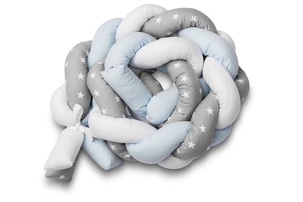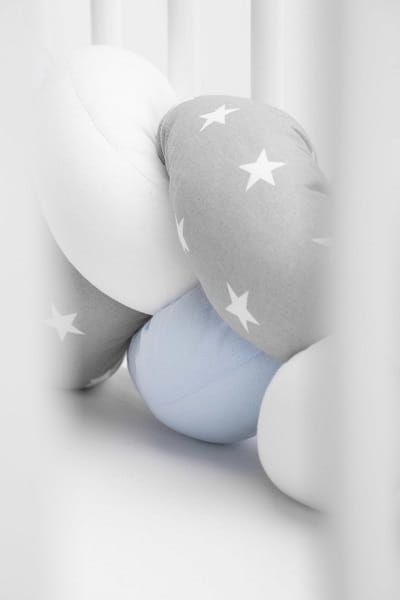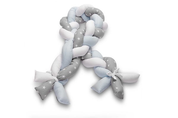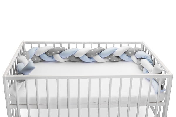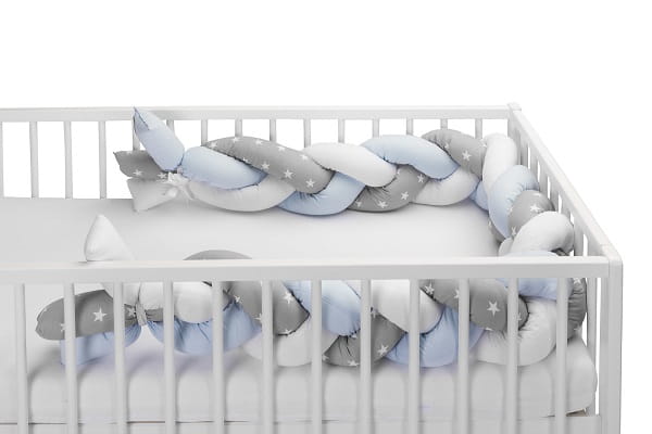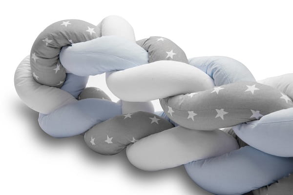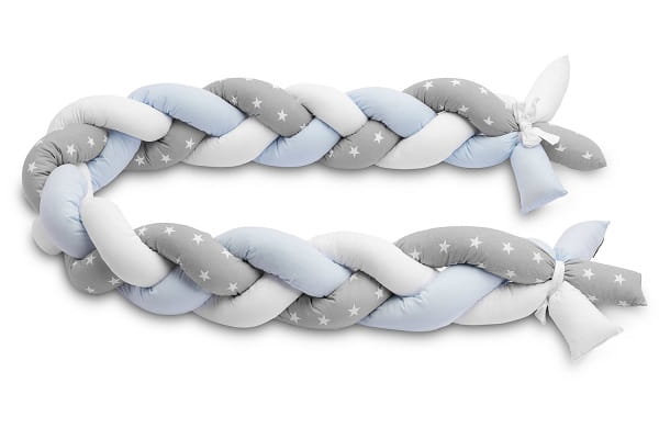 Ochraniacz do łóżeczka - Warkocz o długości 210 cm. Warkocz jest modną alternatywą dla zwykłego ochraniacza. Do naszej oferty wprowadziliśmy 4 wersje kolorystyczne. Przyjemny w dotyku, miękki, ręcznie pleciony ochraniacz do łóżeczka został wykonany z bawełny oraz antyalergicznej kulki silikonowej. Na końcach każdego warkocza dodane są wstążki, służące do zamocowania go w łóżeczku. Przywiązując warkocz do łóżeczka zapewnisz swojemu dziecku bezpieczny i spokojny sen. Warkocz sprawdzi się również jako gniazdko niemowlęce, ozdoba pokoju lub izolacja od zimnej ściany.